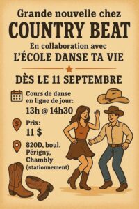 Date 2025 Nov 20 Heure 1:00 pm - 2:30 pm Tarif 11CAD Cours débutant (Chambly / École Danse ta Vie) Veuillez emmener l’argent comptant (11$) le jour de l’événement. + Ajouter à mon Agenda Google + iCal / Outlook export 00 jours 00 heures 00 minutes 00 secondes